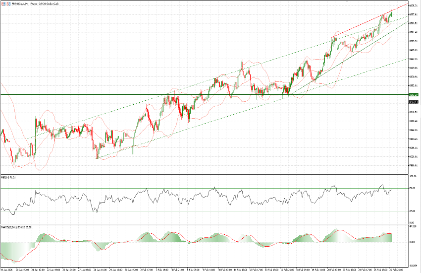 Sin embargo, el Relative Strength Index diario se sitúa en 72, un nivel relativamente elevado. En general, consideramos algo imprudente abrir posiciones largas por encima del límite superior de un canal claramente definido. En caso de un retroceso, los primeros niveles a vigilar serían 8.600, seguidos de 8.580, 8.555 y, finalmente, 8.525 y 8.485 como zonas de soporte más relevantes.