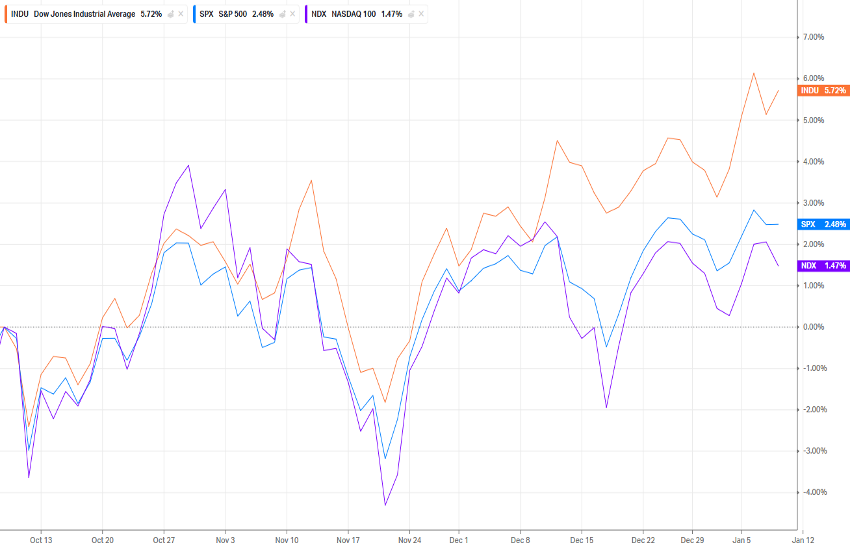 El inicio del año, no obstante, ha estado marcado por un comportamiento muy sólido en varios valores “secundarios”, como Sandisk (SNDK, +23%) tras su escisión de Western Digital, Baidu (BIDU, +20,4%), el actor tecnológico chino, y—entre los nombres de mayor relevancia sistémica—Micron (MU, +10,7%), productor clave de memorias VRAM utilizadas para el movimiento de datos dentro de los chips de NVIDIA. Por el contrario, varios grandes valores han mostrado un rendimiento inferior: en particular Apple (AAPL, -4,72%), percibida como rezagada en el desarrollo de una versión actualizada de Siri, para la cual aún no se ha comunicado un calendario de lanzamiento claro. AMD cae un 3%, Palantir retrocede un 11,1% e incluso NVIDIA se mantiene prácticamente plana, con un -0,78%.