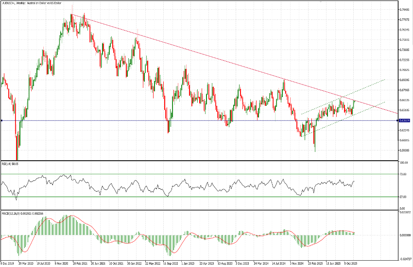 Además, el gráfico de largo plazo resulta especialmente relevante: la acción del precio está poniendo a prueba la línea de tendencia bajista de largo recorrido originada en 2021. Para los inversores de medio y largo plazo, puede ser prudente esperar a ver cómo reacciona el mercado ante este nivel estructural. Una ruptura al alza abriría objetivos iniciales en 0,6710, seguidos de 0,6760 y, finalmente, 0,6795. Un movimiento de sobreextensión hacia 0,6870 podría darse si el sentimiento del mercado se tornara más optimista.