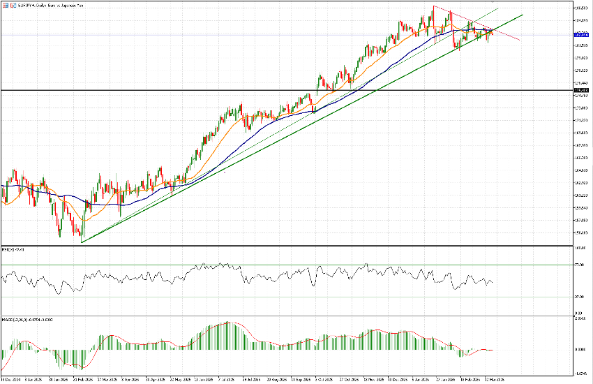 Technically, EURJPY is particularly interesting. Unlike USDJPY, it remains well above the previous highs set during 2024 (around 175.40, marked by the black line). However, unlike USDJPY, it is currently undergoing a consolidation phase, consistent with USD strength and EUR weakness.