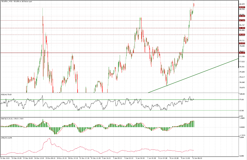 Silver is trading at all-time highs, and the price action has clearly entered a parabolic phase. As of this morning, the rally has extended by an additional +5.58%, reaching $84.36. For traders, there are two key considerations at this juncture. First, virtually all conventional technical patterns have been invalidated; momentum and so-called “animal spirits” are currently dominating price dynamics. Second, volatility is so elevated that even correctly anticipating the end-of-day direction exposes traders to a high risk of being stopped out intraday due to sharp and violent price swings.