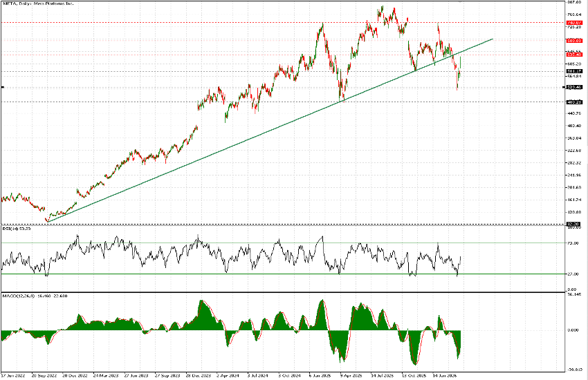 On a shorter timeframe, and in trying to define a clearer target for this newly initiated upward move, the outlook becomes slightly more constructive: the downtrend line from January appears to have been broken (a fairly bullish signal), and in the event of a clear move above the $635–$643 range, there could be further upside, likely toward the previously mentioned $680 resistance. At that point, the price would be approaching a more significant and less steep long-term downtrend line, warranting a reassessment. That said, much will depend on broader market performance and investor risk appetite in the coming weeks, given the evolving global backdrop.
