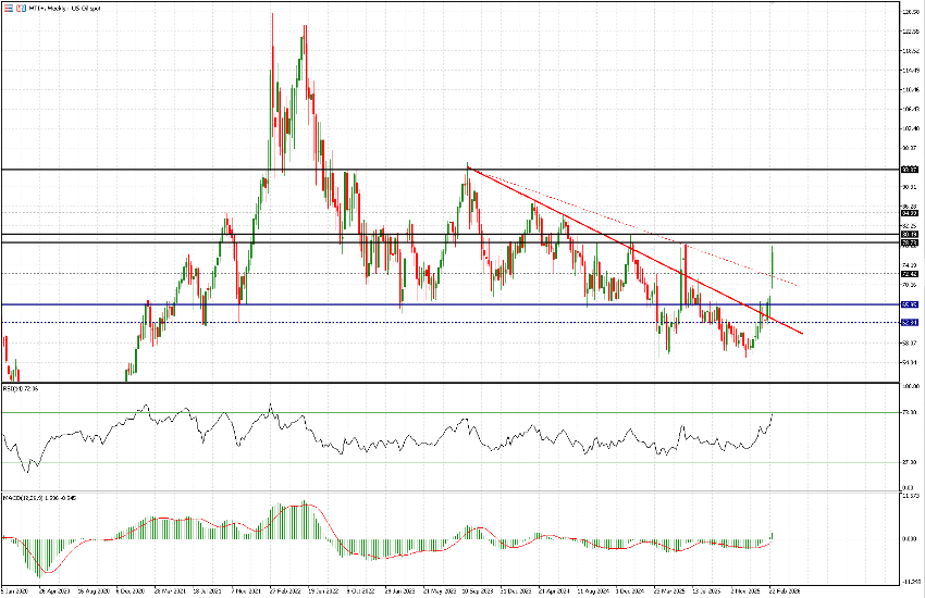 Those who have followed us in recent weeks will know that we had been closely monitoring WTI (Crude), particularly the descending trendline that originated in September 2024 and, above all, the $66 level. This was both because tensions were rising in the Gulf region and because, from a technical standpoint, the futures contract was showing signs of recovery and moving toward the $66 area. That level had previously been a key support, tested multiple times since at least 2021, and was only broken at the beginning of last year.
